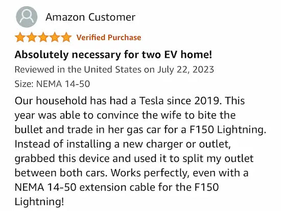 For homes with two EV chargers, the NEMA 14-50 (4-prong) or NEMA 6-50 (3- prong)Smart Splitter, which can pull up to 40 Amps/9.6 kW, is usually the best choice.