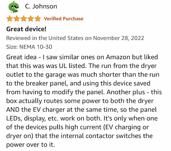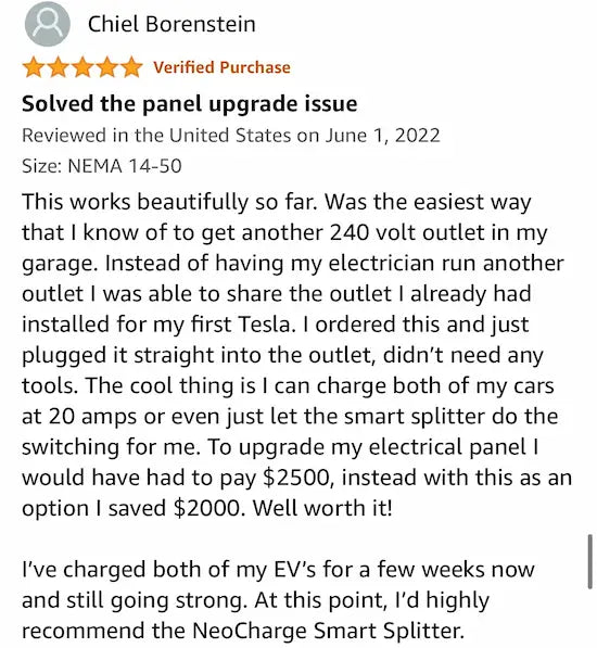 The Smart Splitter saves homeowners and renters money by allowing you to utilize your existing 240V outlet, avoiding the need for expensive panel upgrades, permits, and additional electrical work. By sharing an existing outlet, you can save on installation costs and enjoy faster home EV charging without incurring significant expenses.