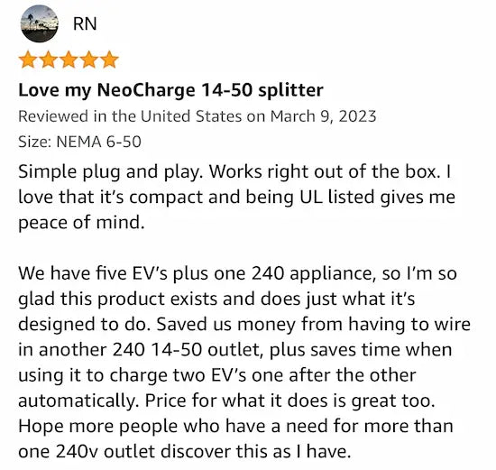 The Smart Splitter makes sharing outlets for EV charging a breeze so you can save money with no panel upgrades, no permits, and no worries. If you’re a renter, you're in luck, just plug in and take charging with you when you move.