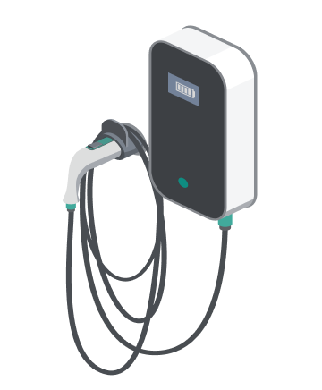 The Electric Vehicle Supply Equpment (EVSE) are commonly know as "EV chargers". Level 2 Chargers use AC current to send power to the car. Chargers may be wall-mounted or free standing, depending on the design and intended use case.