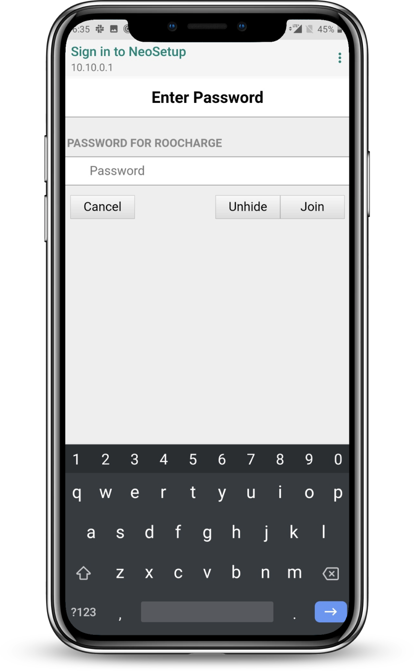 Open the Wi-Fi Setting page on your mobile device. Select the NeoSetup Wi-Fi Network.