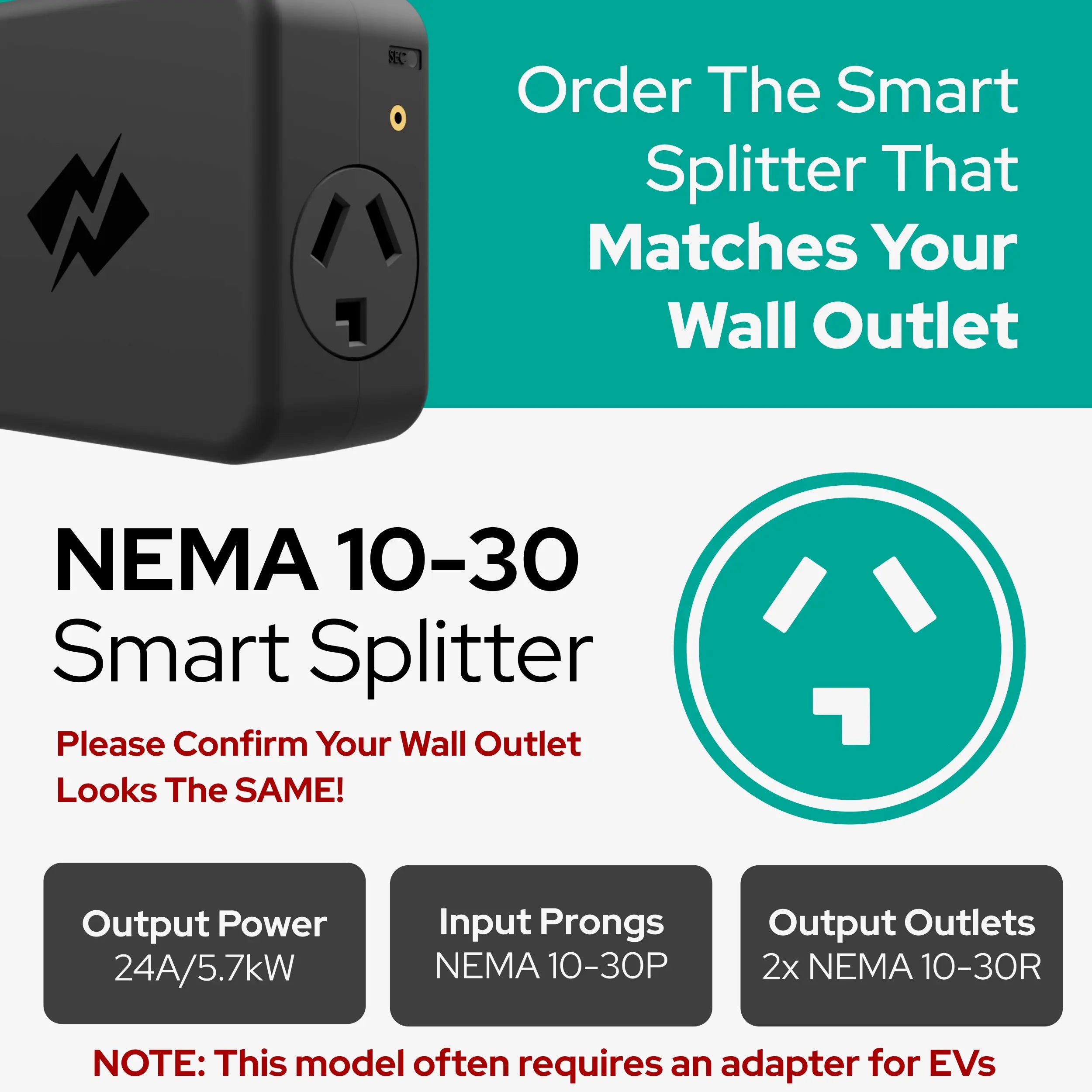 PRO TIP: Verify your 240V wall outlet matches the Smart Splitter before ordering.