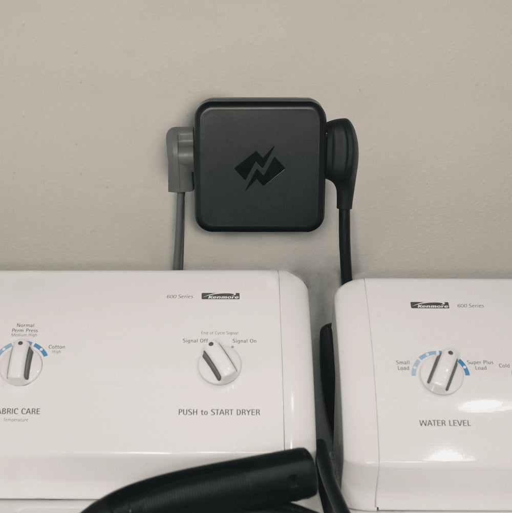 The NEMA 10-30 Smart Splitter plugs into your existing 240V outlet for easy circuit sharing between your dryer and EV.