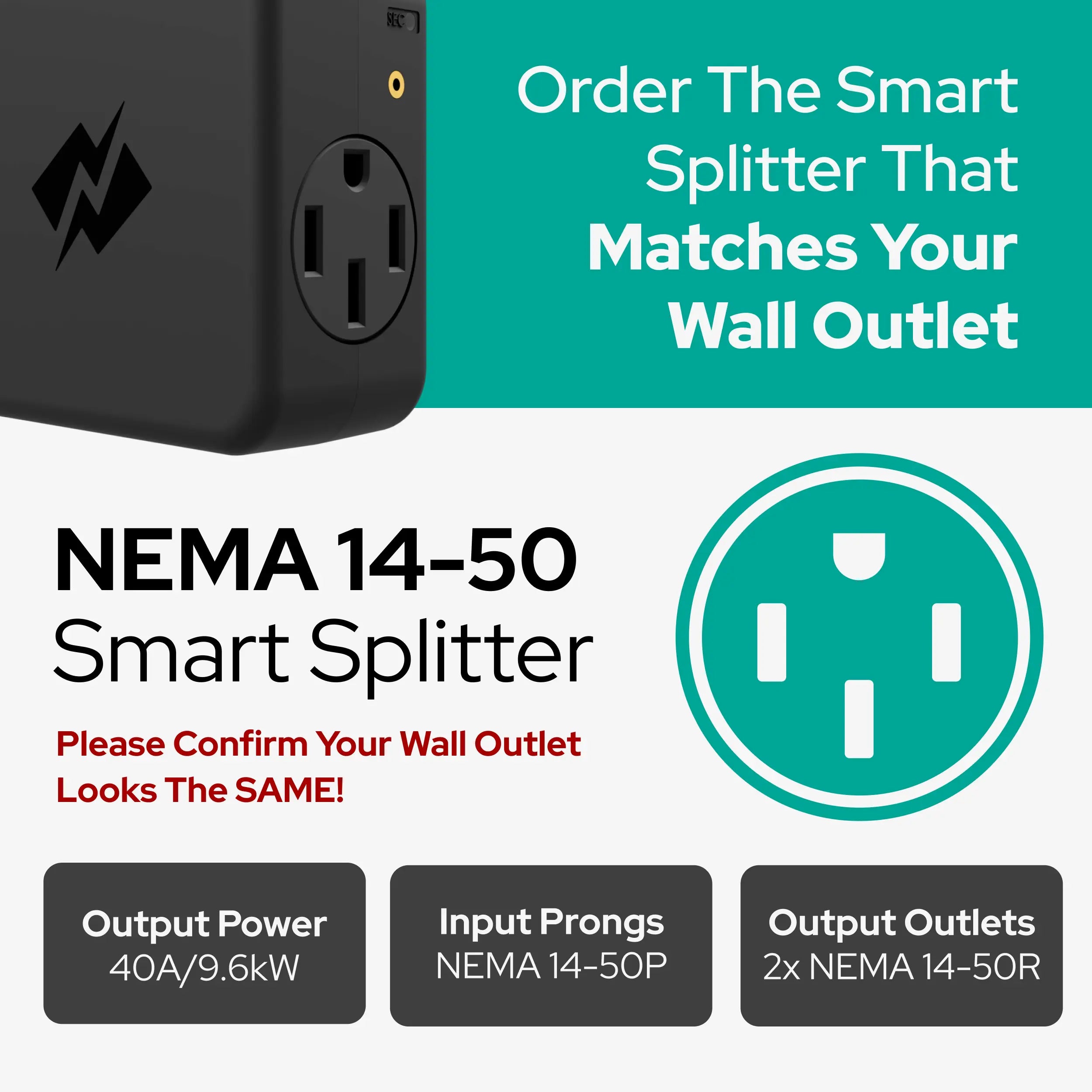 PRO TIP: Verify your 240V wall outlet matches the Smart Splitter before ordering.