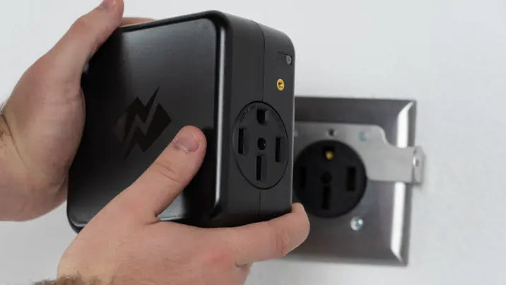 The NEMA 14-50 Smart Splitter plugs into your existing 240V outlet for easy circuit sharing between two EVs.