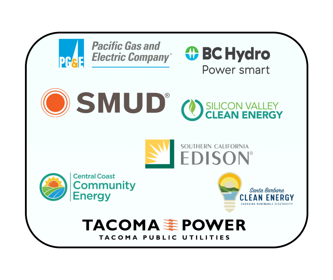 We work with PG&E, BC Hydro, SMUD, Duke Energy, Silicon Valley Clean Energy, Tacoma Power, and many more — with new utilities being added all the time.